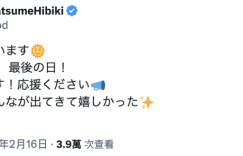 今天,对「夏目響 (夏目响 )」是个很重要的日子。因为她去拍引退作了,我们都知道年初的时候,她在自己的社群发表了「卒业」宣言,告诉大家在发表引退前,每个月都会举办活动,希望大家把握时间赶快去找她玩~